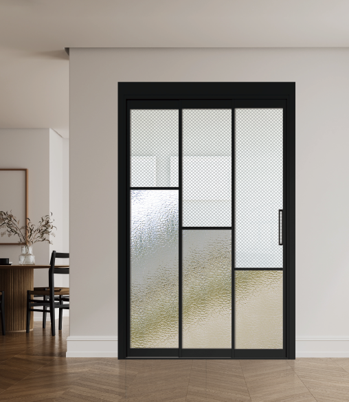 알루미늄의 특성중 하나인 강성을 이용한 슬림한 디자인의 3연동중문 입니다.
